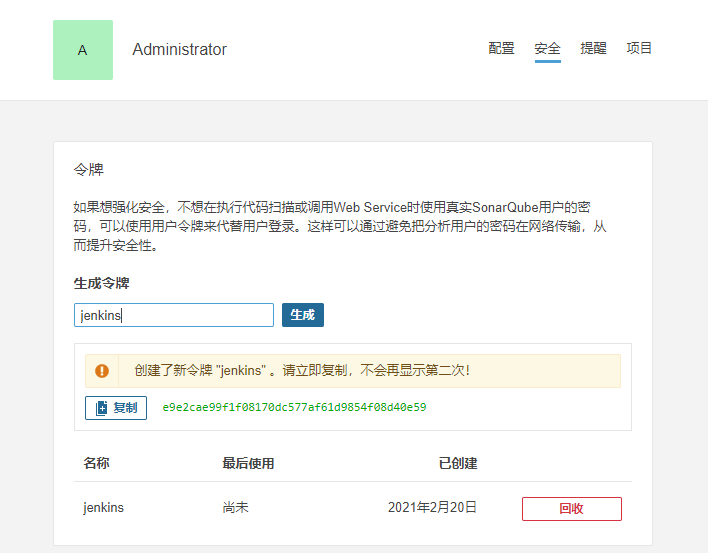 生成jenkins专属令牌