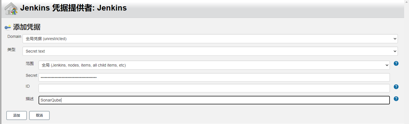 添加凭据 Secret对应创建的令牌