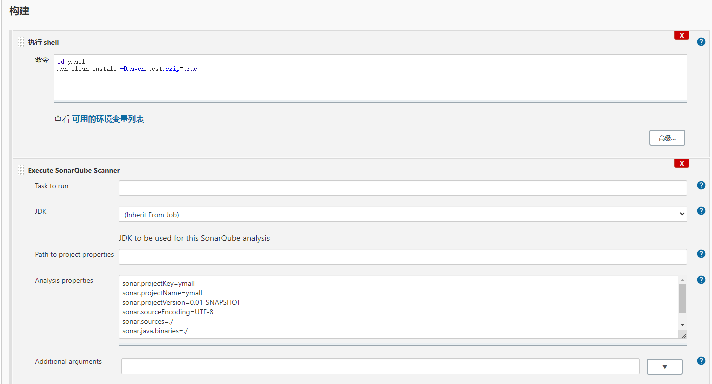 增加构建选项Execute SonarQube Scanner