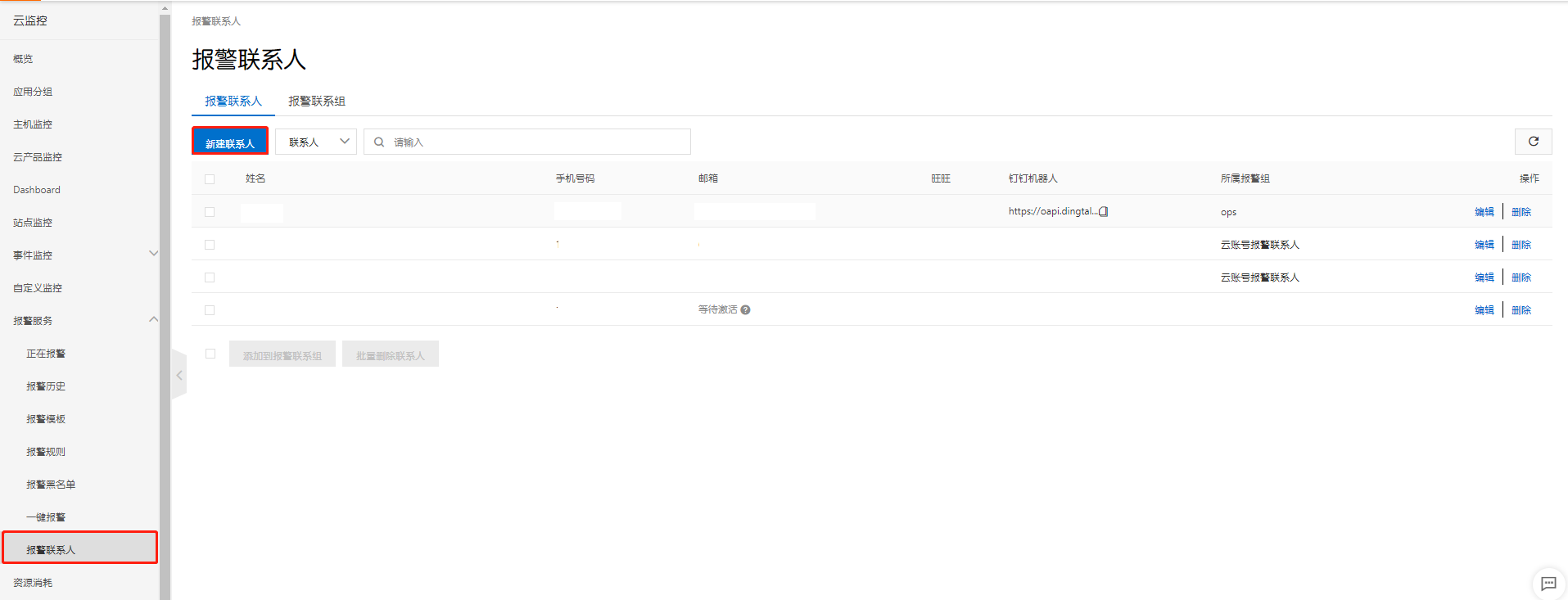 配置报警联系人