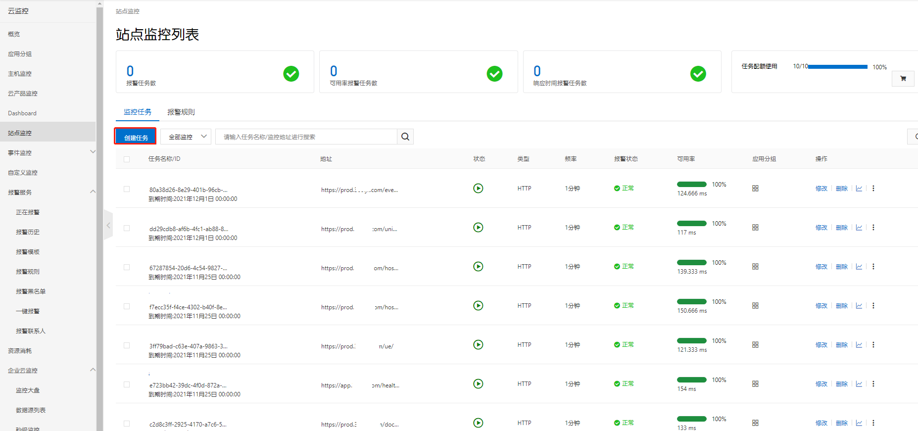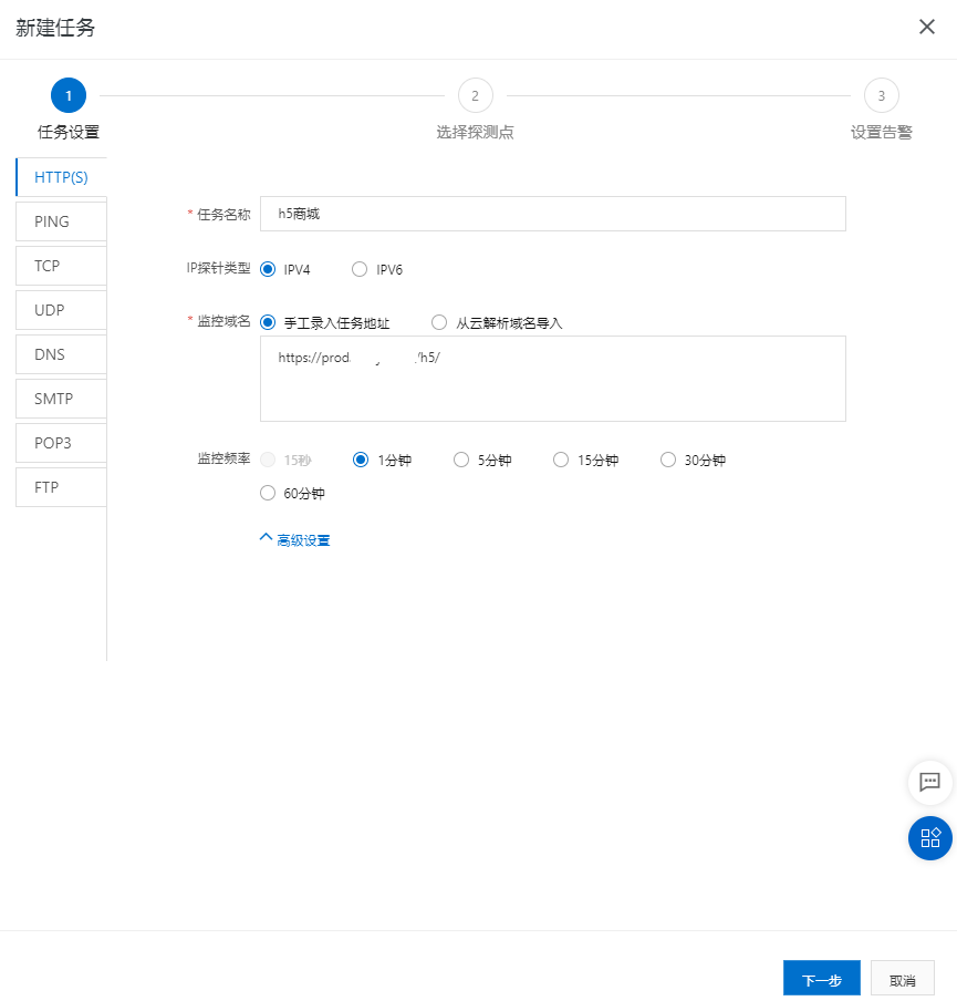 创建站点监控