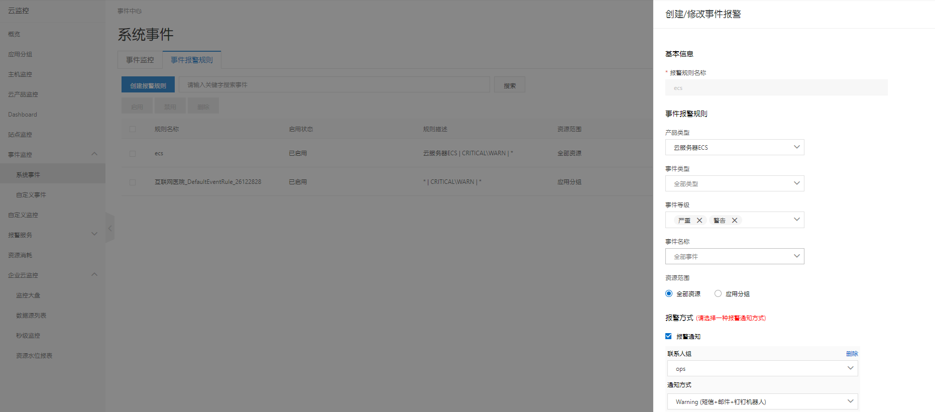 添加事件报警规则
