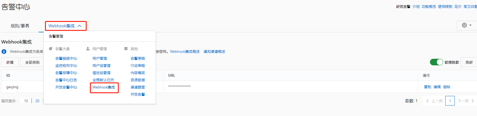 钉钉的Webhook需要进行新建在告警管理>Webhook继承中新增配置