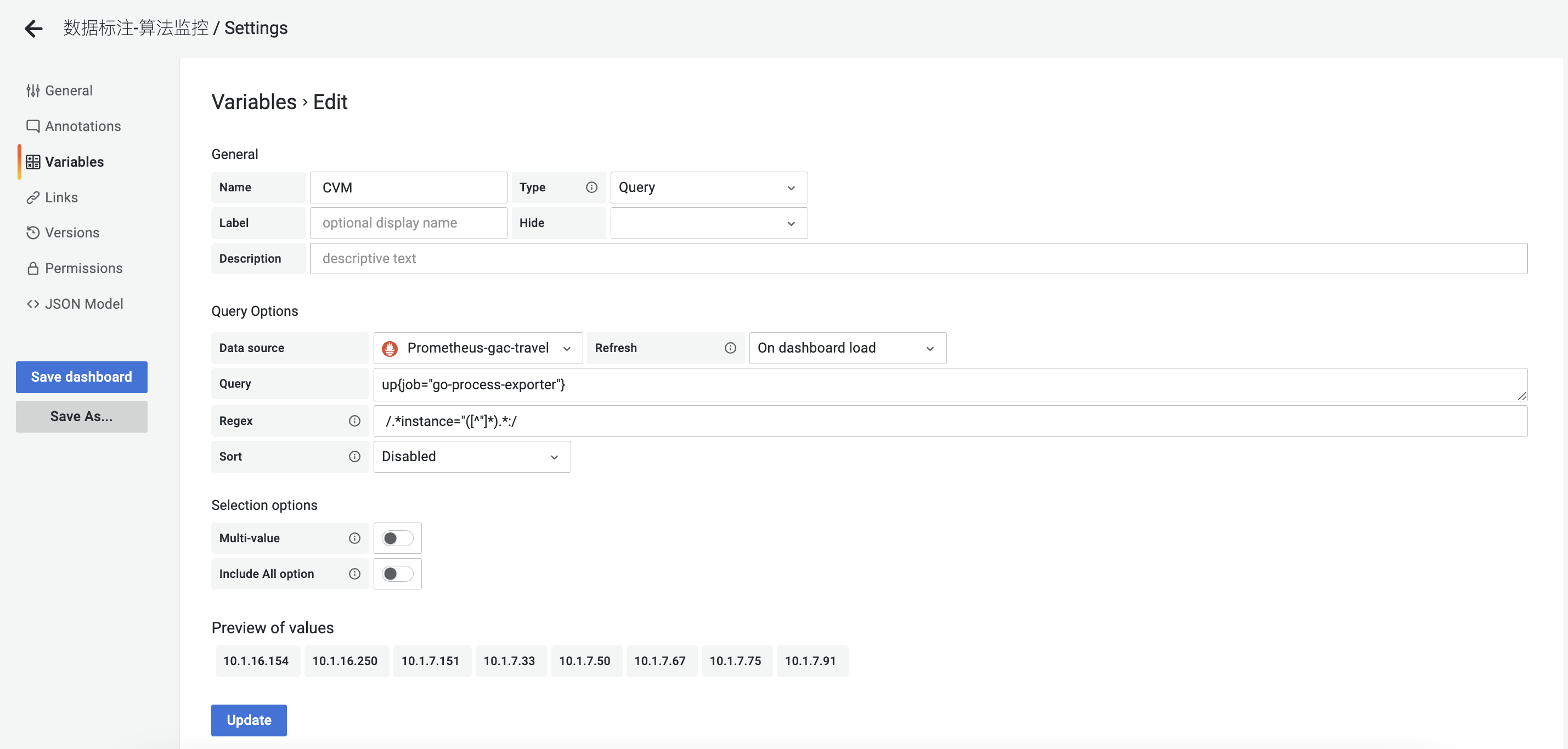 通过CVM变量来过滤监控的机器,ContainerName变量来过滤机器内运行的容器配置面板