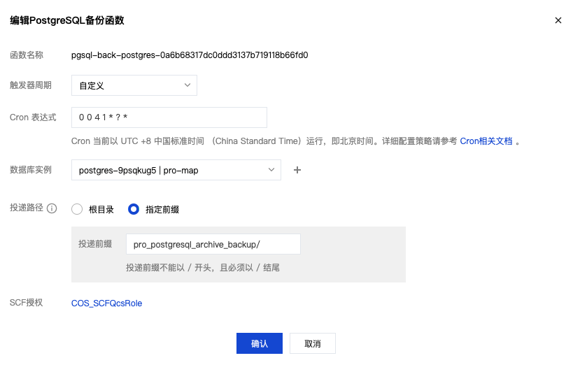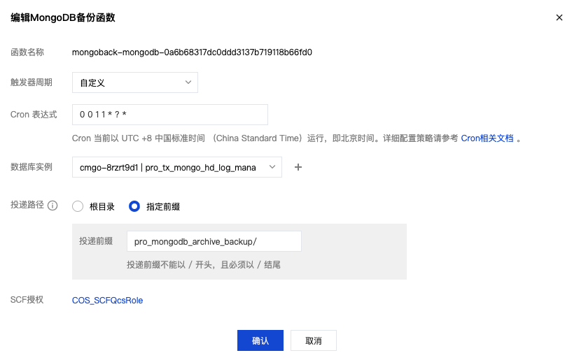 - 投递路径:备份文件的投递路径前缀,不填写则默认保存在存储桶根路径。