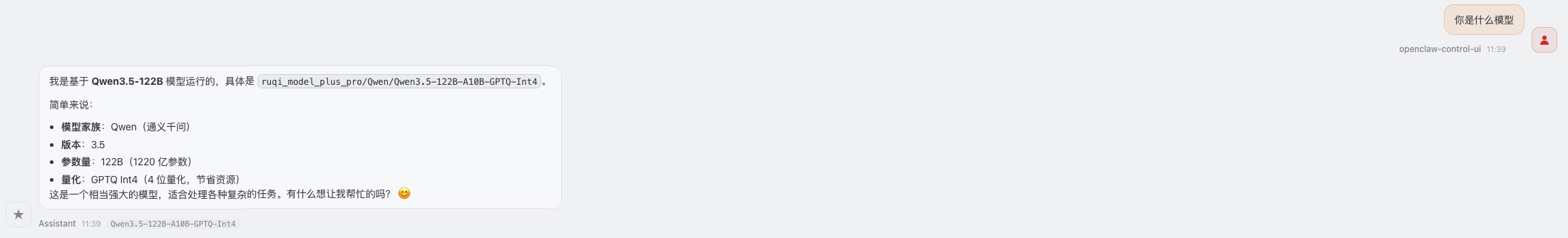 { "models" : { "mode" : "merge" , "providers" : { "idc-llm" : { "baseUrl" : "http://10.0.0.1:41891/v1" , "apiKey" : "placeholder" , "api" : "openai-completions" , "models" : [ { "id" : "Qwen/Qwen3.5-122B-A10B-GPTQ-Int4" , "name" : "Qwen3.5-122B-A10B-GPTQ-Int4" , "contextWindow" : 131072 , "maxTokens" : 65536 , "reasoning" : false , "input" : [ "text" , "image" ] } ] } } } , "agents" : { "defaults" : { "model" : { "primary" : "idc-llm/Qwen/Qwen3.5-122B-A10B-GPTQ-Int4" } } } }